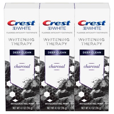 Crest 3D White Whitening Therapy Charcoal Deep Clean Fluoride Toothpaste - Invigorating Mint - 4.1oz/3pk